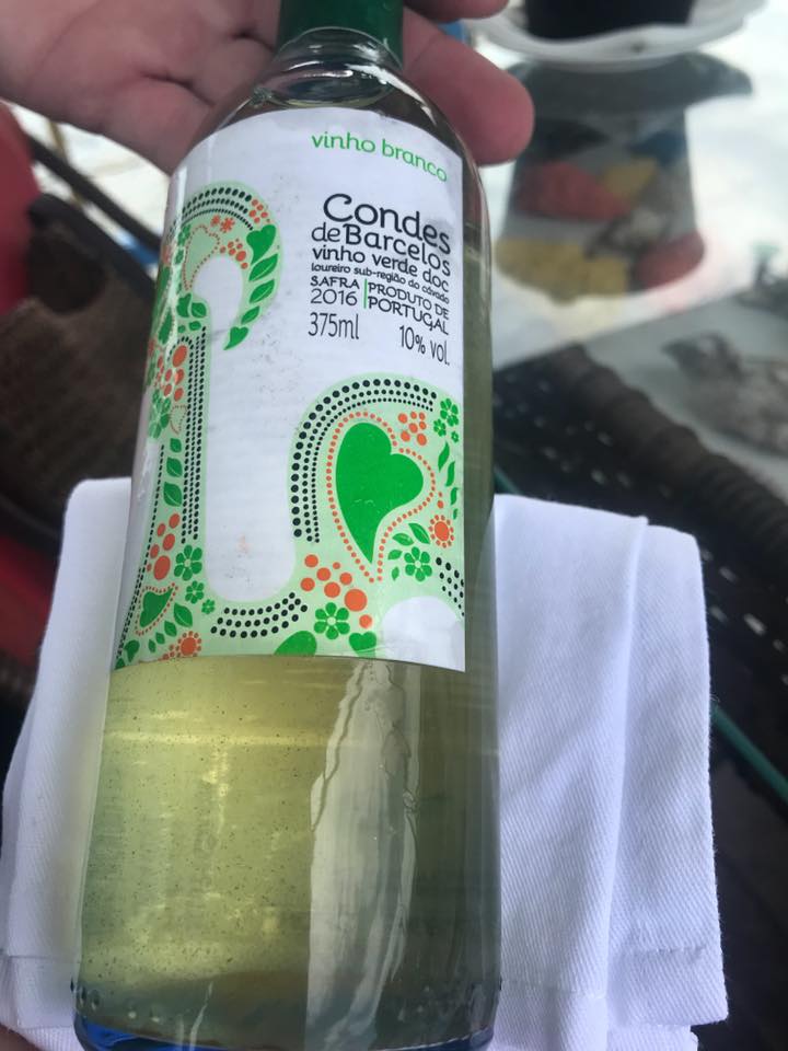 No Ostradamus há uma adega especial, com vinhos do Novo e do Velho Mundo, mas optei pelo vinho português verde Conde de Barcelos. A refeição se torna ainda mais especial no ambiente do trapiche: