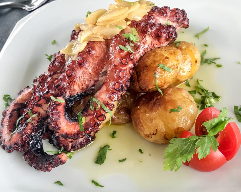 Em Santo Antônio de Lisboa, outro charmoso distrito de Florianópolis, também de origem açoriana, eu indico o restaurante Marisqueira Sintra, mais um que figura entre os melhores de Florianópolis. O proprietário do estabelecimento é um português de Sintra radicado há 9 anos em Florianópolis, que veio a residir na Ilha da Magia com o propósito de abrir um restaurante no Brasil. A comida é típica portuguesa, principalmente da região de Sintra, que eu já escrevi post sobre aqui. Almoçamos um Camarão à Guillo de entrada, um Polvo à Lagareiro como prato principal e de sobremesa pedi a Baba de Camelo, um dos meus doces portugueses preferidos. No restaurante, apenas vinhos de Portugal, principalmente do Alentejo e do Douro, além de alguns espumantes do Rio Grande Sul e de Santa Catarina. Pedi o Foral de Meda, do Douro, um vinho com notas frescas e cítricas.