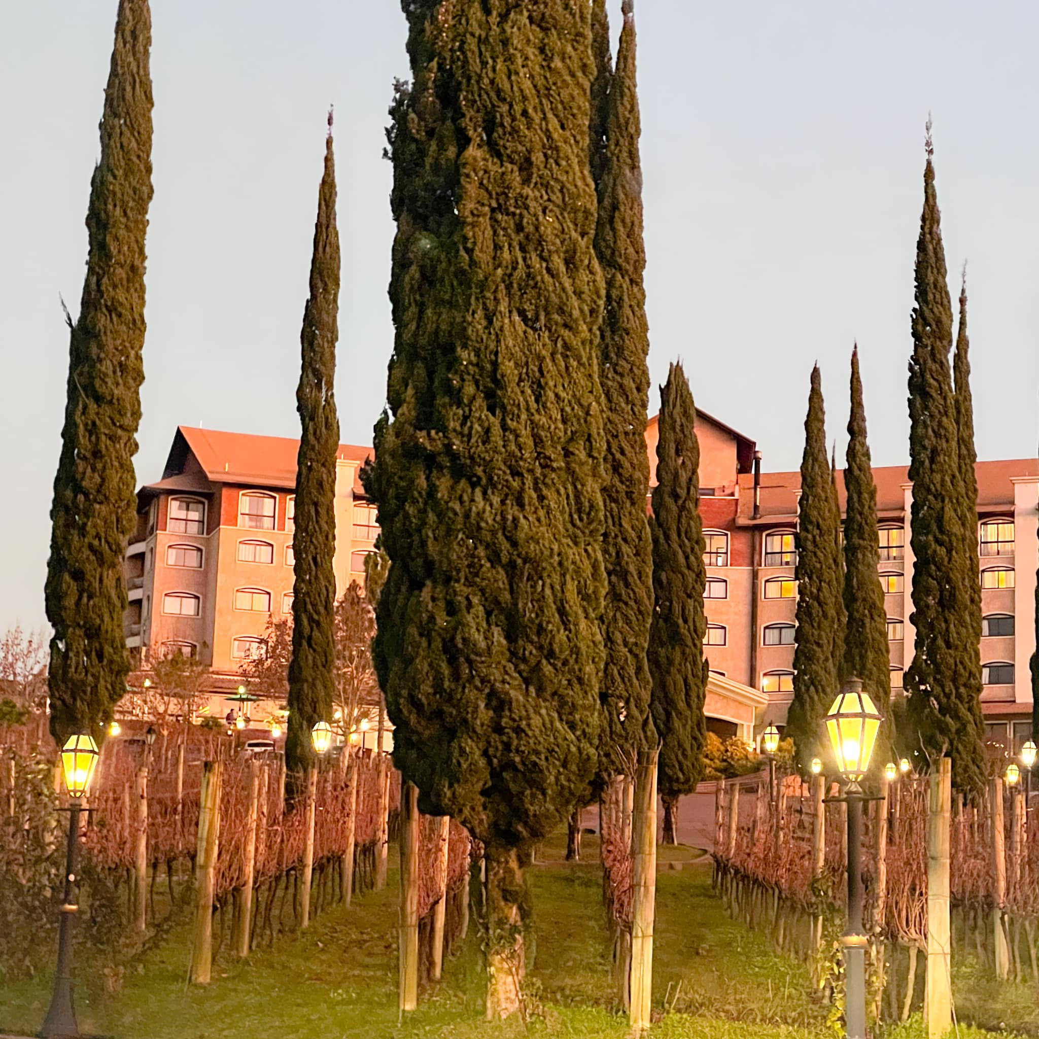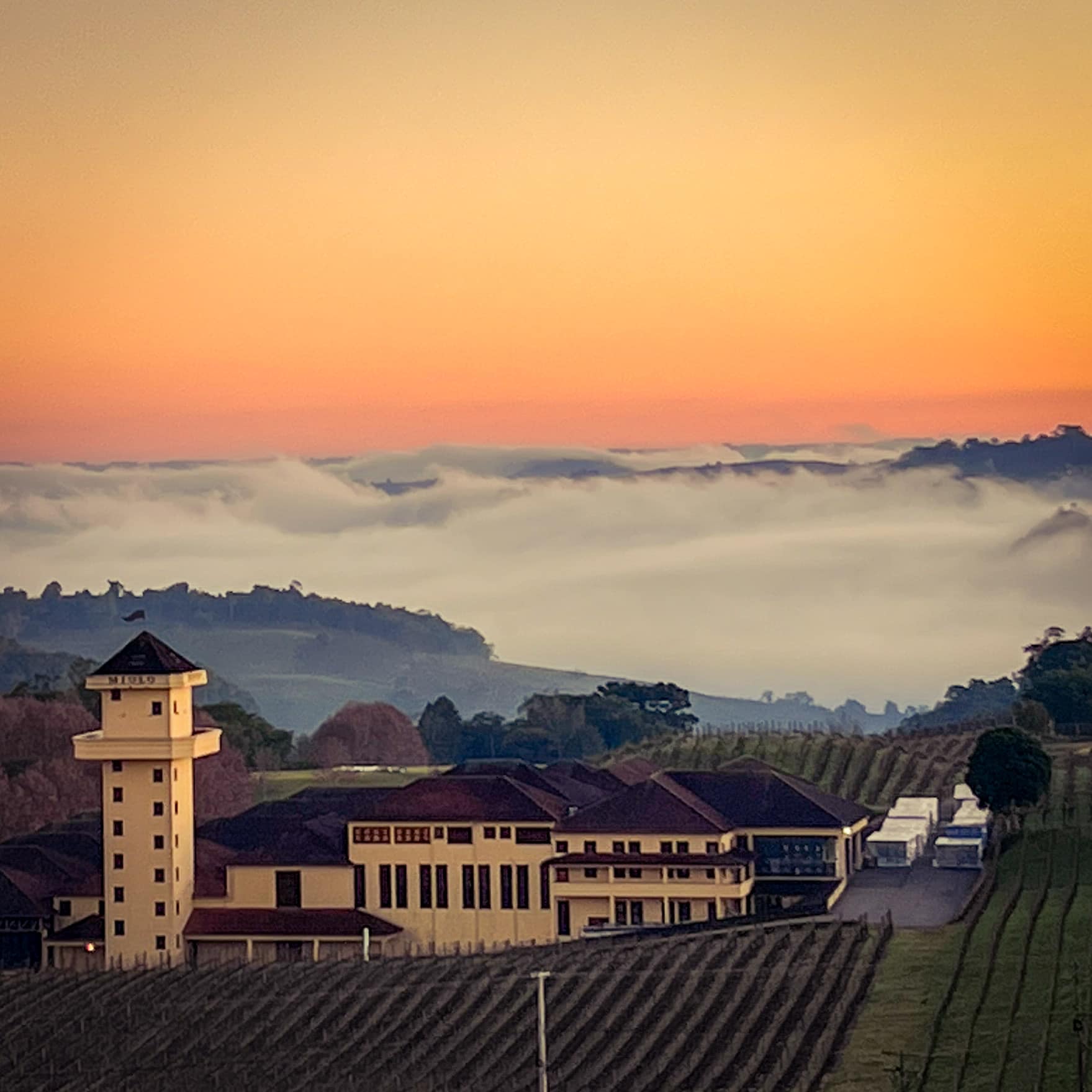 O que mais surpreende é o pôr do sol nessa localidade. Sem nenhum tipo de filtro, é incrivelmente real. Assim era a vista do nosso quarto em direção aos vinhedos. Recomendo se hospedar no inverno – eu sou suspeita para falar porque é minha estação preferida e a minha região é a única do Brasil onde as temperaturas ficam abaixo de zero.