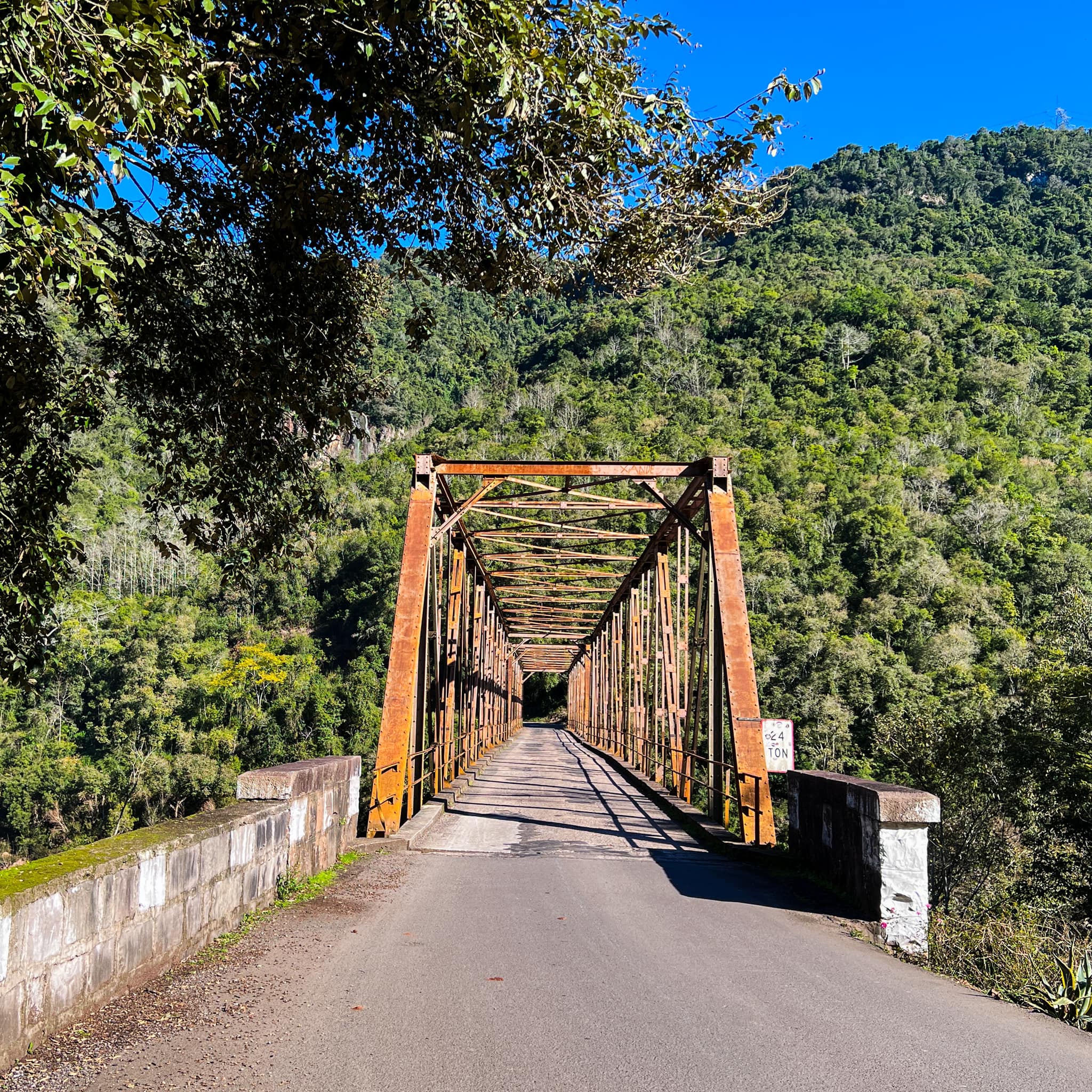 Já dizia o antropólogo e sociólogo brasileiro Darcy Ribeiro que o Brasil é a “Nova Roma”! Então, eis Nova Roma do Sul, outra cidade de colonização italiana (no caminho para Antônio Prado). Nova Roma do Sul fica a 1h de Bento Gonçalves. Não chegamos a entrar na cidade, mas paramos na Ponte de Ferro sobre o Rio das Antas. O local da ponte é usado para práticas esportivas como rafting e bungee jump.