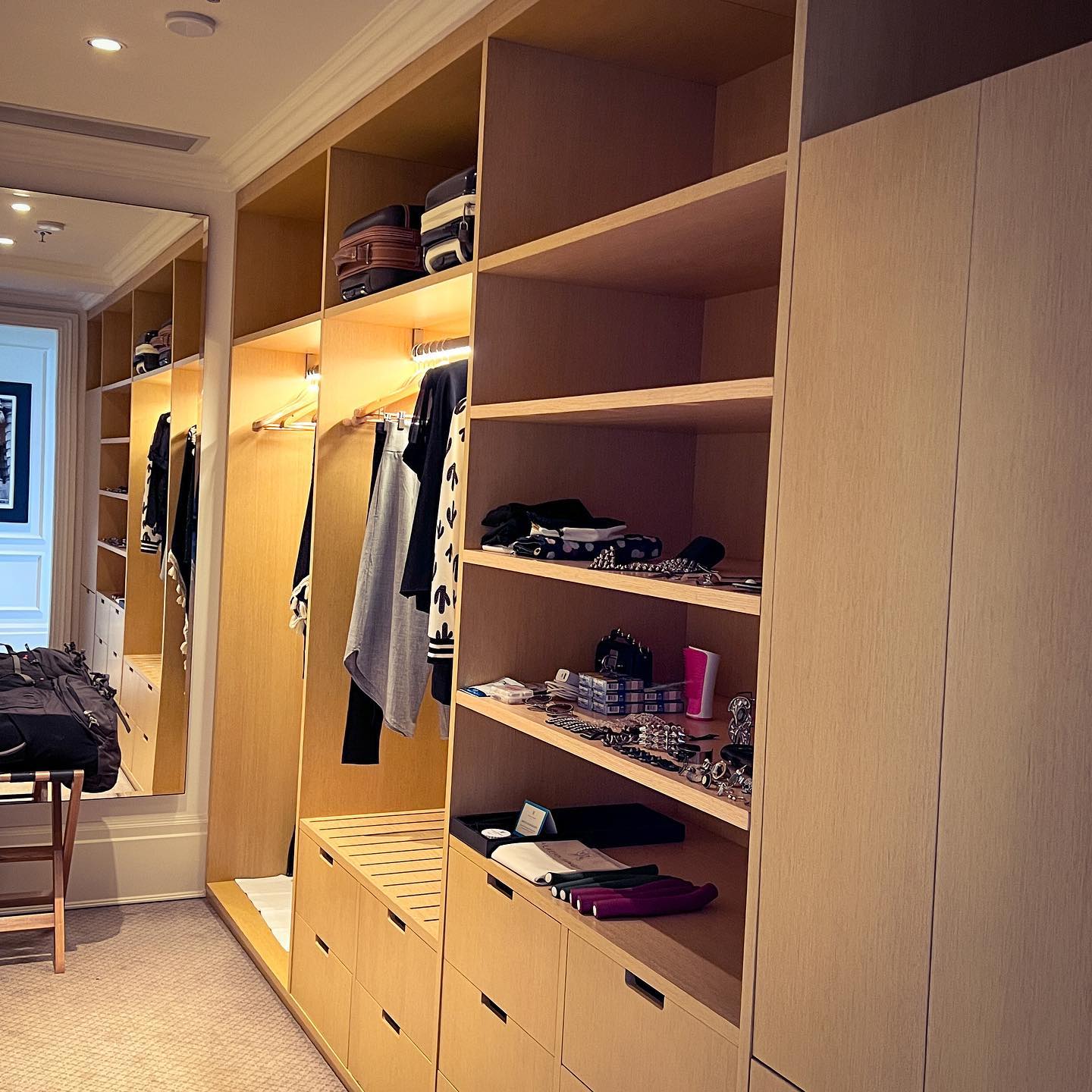 Logo ao chegar, descobri que o hotel oferece um serviço gratuito de organização das suas roupas, acessórios, sapatos, cosméticos etc. no closet. Eles abrem sua mala, mediante autorização, e organizam tudo em detalhes. Poucas vezes na vida eu vi tão perfeita organização. À beira de Transtorno Obsessivo Compulsivo, confesso que me maravilhei com tamanho esmero na organização.