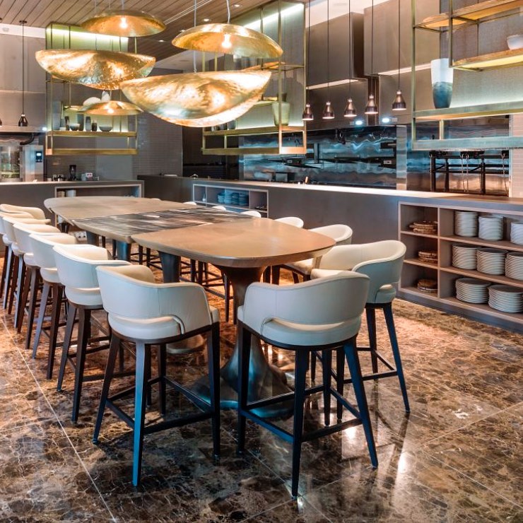 Menus de preço fixo e pratos especiais do dia são servidos na convidativa Chef’s Table. O restaurante oferece refeições à la carte, bem como menus de degustação e clássicos acompanhados por uma seleção de coquetéis autorais. Uma lista cuidadosamente selecionada de mais de 280 vinhos diferentes inclui rótulos do velho e do novo mundo.