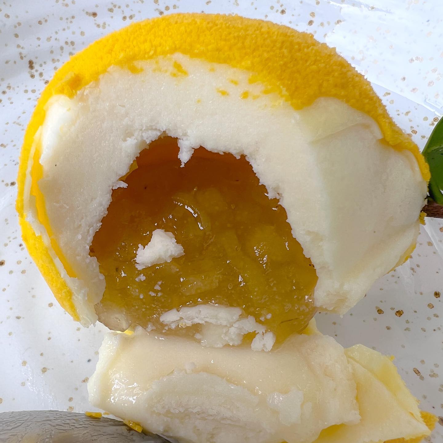 - Doce em formato de limão siciliano: mousse de chocolate branco, yuzu, gel e compota de limão siciliano.